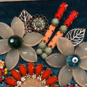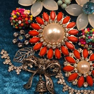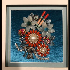 FRAMED JEWELRY ART COLLAGE HANDMADE UNIQUE OOAK GIFT 🎁 IDEA. NEW WHITE MATTED FRAME appx 11” square. (Interior appx 5.5” square). Has wall hanger. New and vintage jewelry form “bouquet” with “bow” and “ribbon”. Background is aqua velvet. Jewelry attached with e6000 glue for long lasting beauty. FAST SHIPPING 🚀