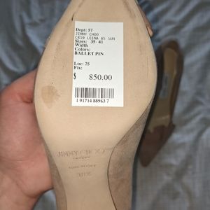 brand new, never worn outside of my living room 38 1/2 Jimmy Choo heels. ballet pin color. box and bag included