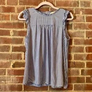The Softest high neck ruffled sleeveless blouse with stripes and ruffles LOFT MP