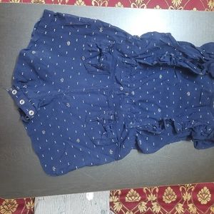 Cute blue baby romper with frill sleeve and front buttons.Comfortable breezy cotton fabric with doted pattern and little stretch.