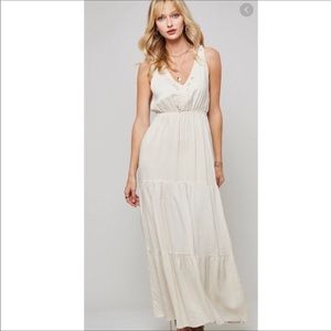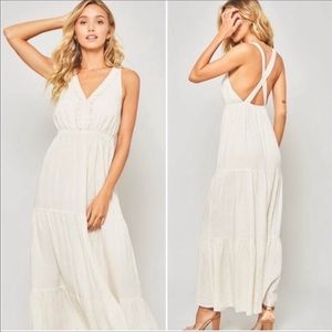 ECRU BOHO LOW BACK CROSSED STRAPS MAXI DRESS