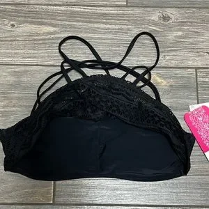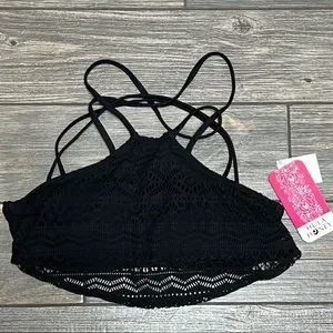 NWT Hula Honey High Neck Bikini Swim Top Black Lace Overlay XS S M XL Juniors'