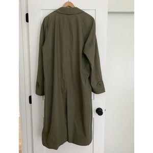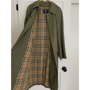 Vintage Burberry trench coat. Timeless and beautiful. Color is a gorgeous soft light khaki olive. Button closure. Back vent. Classic check interior lining with luxurious silky sleeve lining. Size Large. Full long length, approx 48” long. 100% authentic. Label is Burberry Prorsum which was their high end runway line.