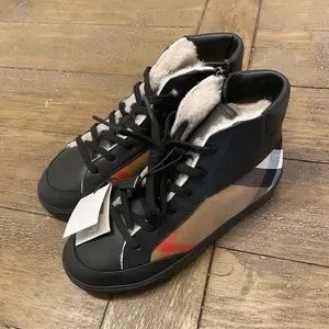US 13.5, black leather with iconic checkered design, sherpa lined, high-tops with inner zipper, functional laces, round toe and black soles. So hard to find with color/lining combo and gorgeous! Retail $350