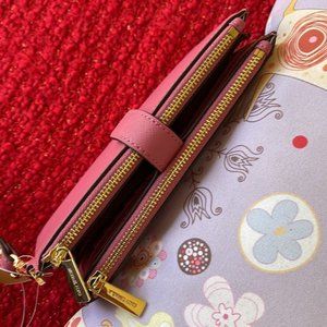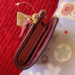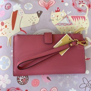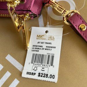 Michael Kors Jet Set Travel Large Double Zip Wristlet Wallet Rosewood Leather