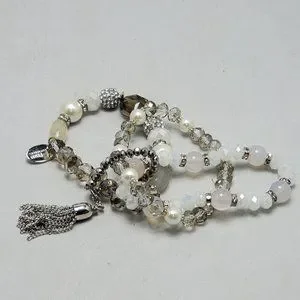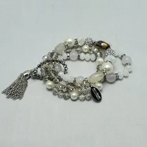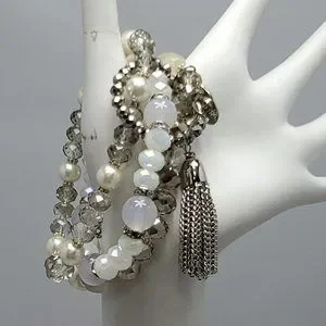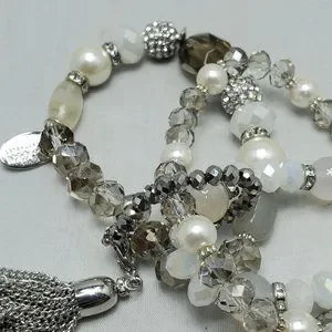 ALI KHAN glass beaded bracelet with rhinestone & glass pearl with silver tassel and gift box