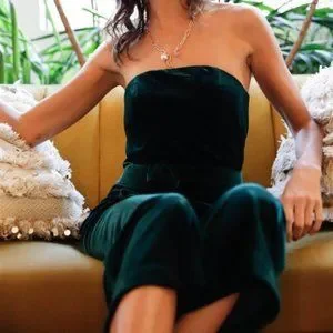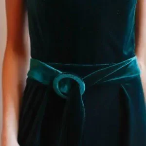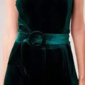 GREEN Velvet Off-The-Shoulder Front Buckle Belt Jumpsuit