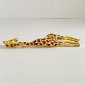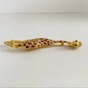 Giraffe Gold Tone Figural Brooch Pin Vintage Elegant Rhinestone and Enamel