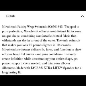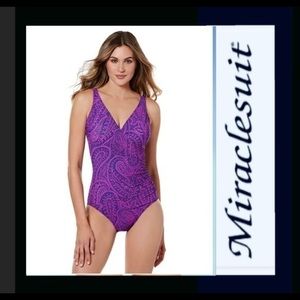 Miraclesuit swimsuit paisley print NWT Look 10 pounds lighter instantly in this gorgeous paisley print swimsuit from Miraclesuit. First quality built in cups with shelf bra full coverage bottom new with tags retail 164.00. Multiple sizes available. Slimming tummy control. Free shipping