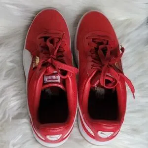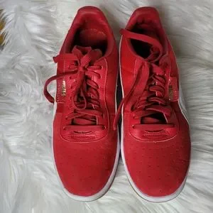 red and white casual athletic sport sneakers. Size 10.5