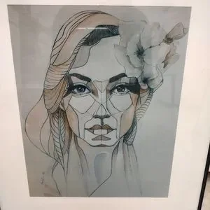 Art Watercolor by Polish Artist woman portrait (print) in frame