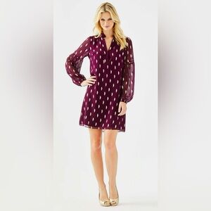 Lilly Pulitzer NWT Shea Silk Dress Cabernet Berry Diamond Clip
