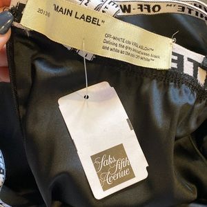 This is a black satin dress Off-White Main Label and from the Fine Arts collection c/o Virgil Abloh