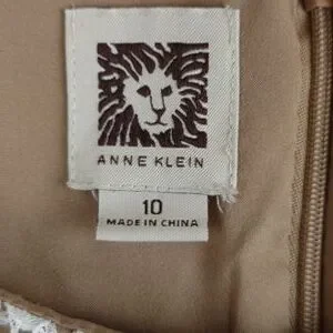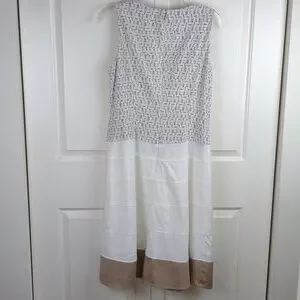 Anne Klein Sleeveless Lace Overlay Cotton Blend Tiered Skirt Tan & White Dress. Upper Body 65% Cotton / 35% Nylon