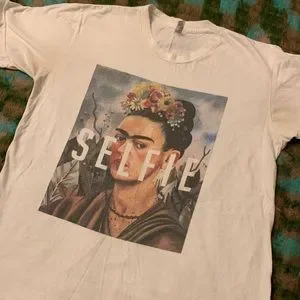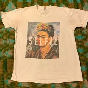 Selfie Frida Kahlo Portrait Tee. Has some discoloration under the armpits (see pictures for details), but it can be easily spot-bleached out.