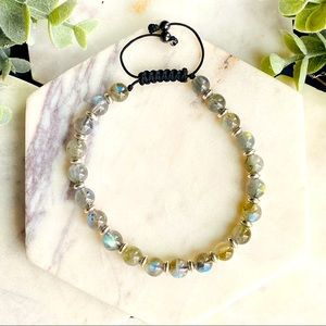 Men Labradorite Adjustable Beaded Bracelet Cord Macrame Men & Women