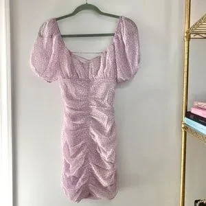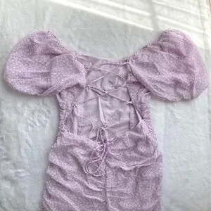 NWT Red Dress Boutique Purple Puff Sleeve Dress w/ Lace Up Open Back