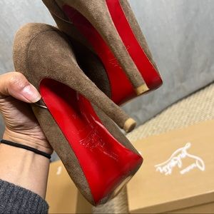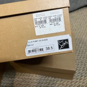 Christian Louboutin JS 120 Pump Camel Suede Size 38.5 with hidden platform so there’s more support. 100% authentic