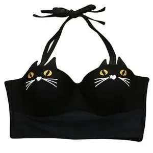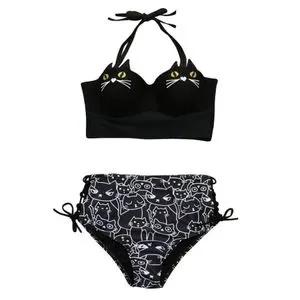 ●SALE●🇨🇦Kitty Cat Bikini Set Underwire Padded Bathing Suit Black
