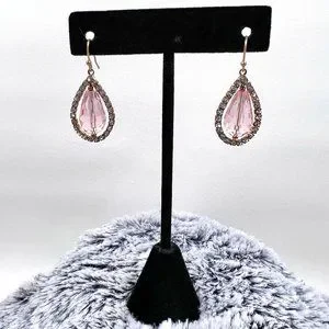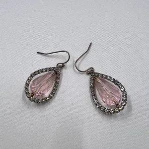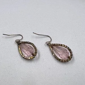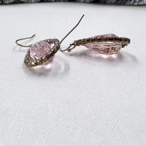 Blush Color Large Faceted Teardrop and Rhinestone 1.25” Gold Tone Fishhook Earrings. Beautiful earrings perfect for any occasion. Earrings are previously loved and are in good condition.