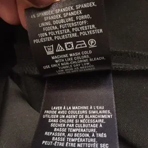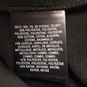Cotton, Polyester, Acrylic, Spandex, Rayon, Metallic Fibers. Lining is polyester. Machine washable.