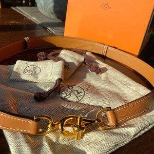 Limited edition and sold out Hermès gold hook belt. This can adjust from 36 inches to less. Pic of top of receipt purchased at Hermès NYC location.