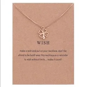 “Wish” clover gold color trendy fashion necklace. Link chain with lobster clasp.