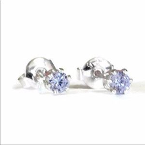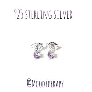 *Handmade 925 Sterling Silver Dainty Lavender Cubic Zirconia Stud Earrings
