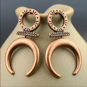 BRONZE WESTERN MOON DECOR C DROP EARRINGS