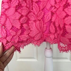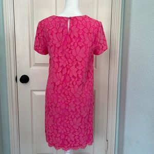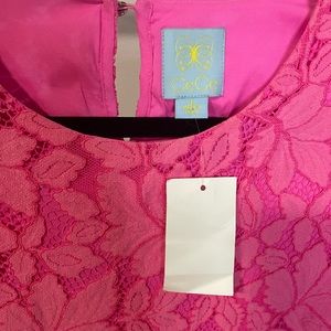 New with tags!! Fun hot pink lace dress by Cece! Purchased at Nordstrom Rack. Has a fun hem with lace. Slip under lace is also hot pink. HAS POCKETS!