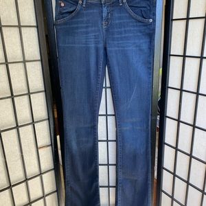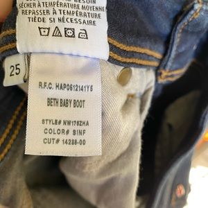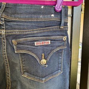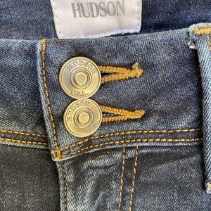 Super cute Hudson dark blue super stretchy worn once for an hr. Noticed small hole in back pocket flap pretty much covers it. There is a pin dot size fabric snag see pic. Not really noticeable…Excellent condition other than that.
