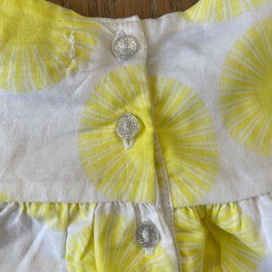 Beautiful A shape dress with happy print, bow front and silver thread detailing on sleeve edge and bloomers.