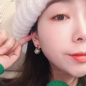 Tory Burch Green Hexagon Logo Drop Earrings