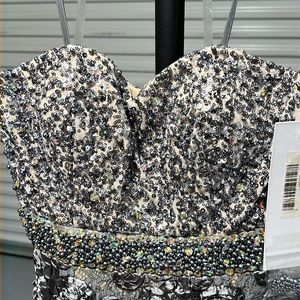 Elegant Jovani style 2184. Color is Dark Grey. Size 2.