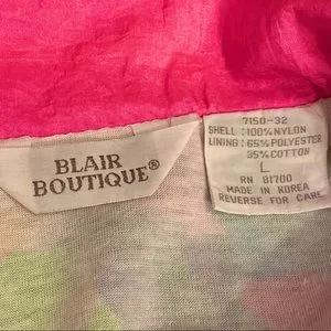 VTG Blair Boutique 80s / 90s Neon Watercolor Windbreaker. Front Pockets. Shell 100% Nylon. Lining 65% Polyester 35% Cotton. Great Pre-Owned Condition. Size L. Such a Colorful, Artsy, Cute Jacket! ๐๐๐งก๐