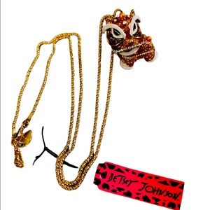 Betsey Johnson Chinese Kiren Dragon Enamel Necklace-Gold Plated Unisex-Moveable Head