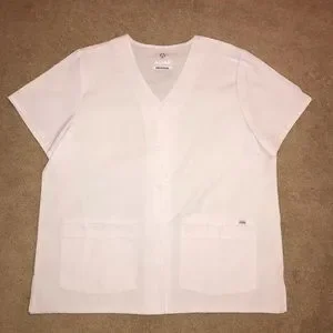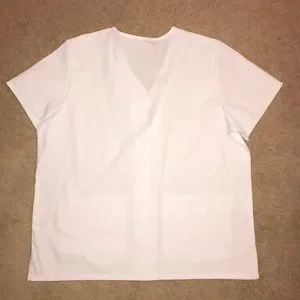 Adar Medical Scrubs Top NEW Plus Size 2XL White Short Sleeve Snap Button V Neck