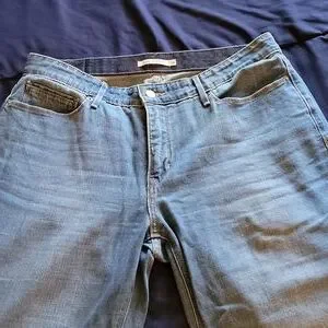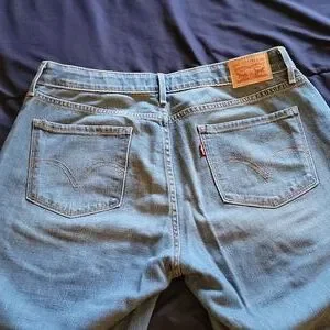 straight leg, women's Levi's, featuring soft, stretchy waistband, 31" inseam. 99% cotton, some stretch. Excellent condition, no tears or distress.
