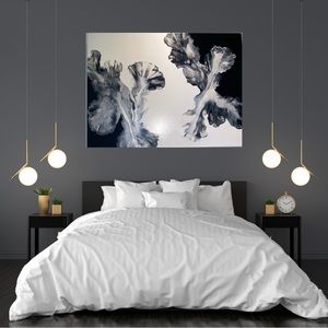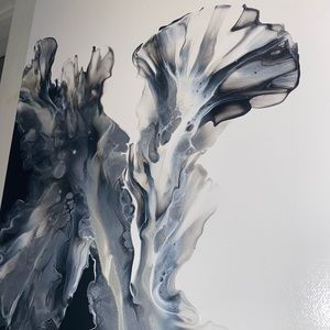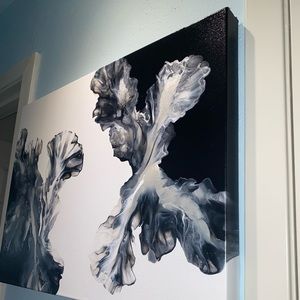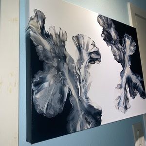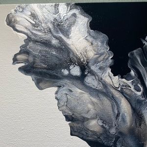❌SOLD❌18x24 hand painted acrylic fluid pour art canvas painting black white