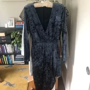 Lulu's, Long Sleeve Asymmetrical Dress, Slate Blue Velvet, size XS, NWT