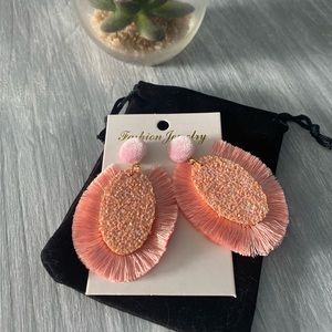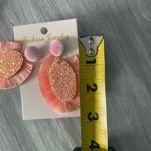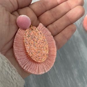 ๐ Pink Fanned Tassel Glitter Drop Earrings. These are very lightweight earrings with a gold metal post. Iโm not sure if they are nickel free or not. New with tags. Comes with black pouch. From a smoke free, Maltipoo friendly home.