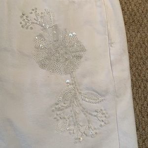 NWT denim mini with sequin details. Never worn but it does look a little bit dingy from being with my other jeans in closet. Ask any questions!