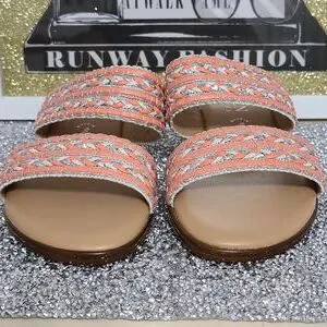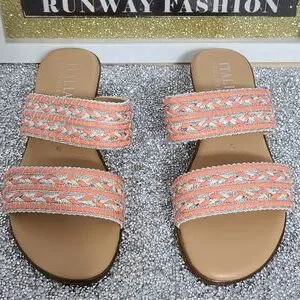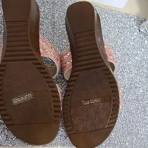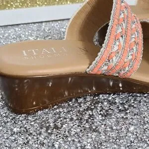 NWT Italian Shoemaker Strap Sandal with small Heel SZ 6 Salmon and Silver