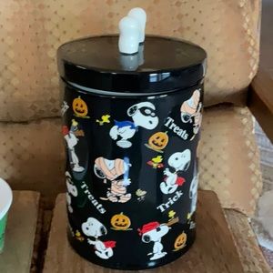 Snoopy & Woodstock Halloween Costumes Canister & MORE PLEASE! pet bowl NWT