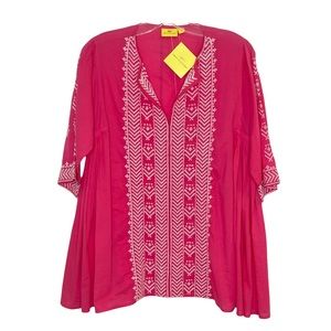 Roberta Roller Rabbit Pink Embroidered Short Sleeve Top