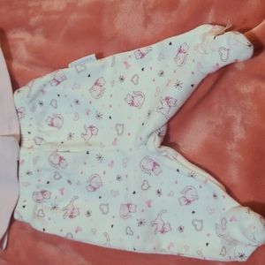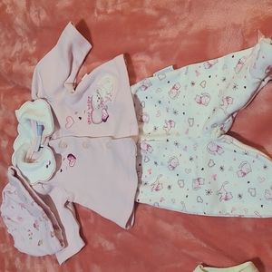 This bundle of baby clothes is for a preemie. The onesie has ducks, building blocks and teddy bears on it. Trim on ot is yellow. The other is a 3 piece outfit. It has kittens and hearts on it. The footies on it has little pink bows. There is one tiny stain on the shirt of the 3 piece outfit. I took a pic of it. I did not see the stain until I was taking my pictures. You can barely see it. (Bundle A4). PLEASE NOTE: Bundle A4 is for my organization at home.