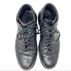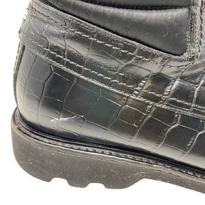 Black leather lace up Emporio Armani boots with an alligator texture. Size men’s 8. There are a few scuffs but otherwise these are in good gently used condition.