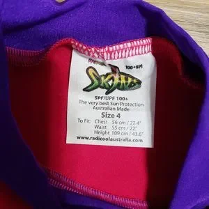Radicool Skins Girls Pullover Rash Guard Size 4