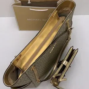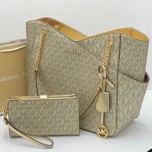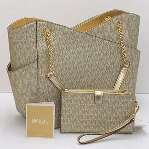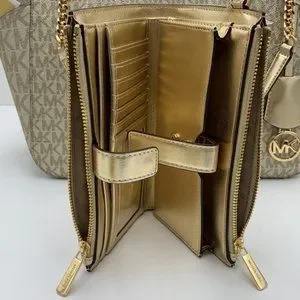 Michael Kors Large X Chain Sholder Tote & Large Double Zip Wallet Pale Gold