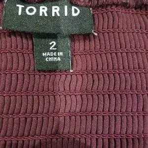 Torid Burgundy adjustable strap zippered front elastic back flowy top sz 2 =2X Beautiful top and great condition. Measurements neck-hem 36" at longest section. Bundling Available